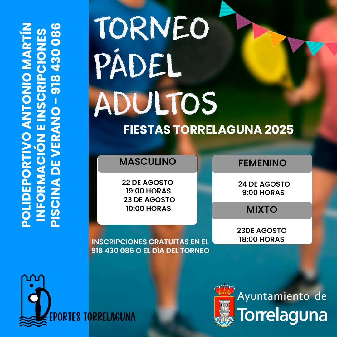 Durante las Fiestas de Torrelaguna 2025, el Polideportivo Antonio Martín acogerá emocionantes torneos deportivos para adultos, organizados por Deportes Torrelaguna. ¡Anímate a participar y consigue medallas en un gran ambiente festivo!