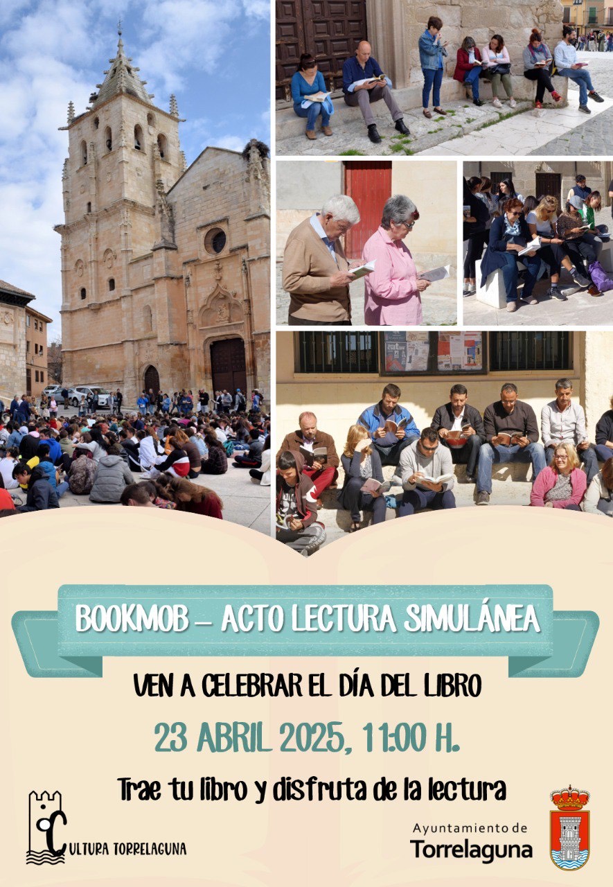 Un año más, la Biblioteca de Torrelaguna nos invita a sumarnos al Acto de Lectura Simultánea (“Bookmob”) que se celebrará mañana miércoles, 23 de abril, a las 11:00 horas.