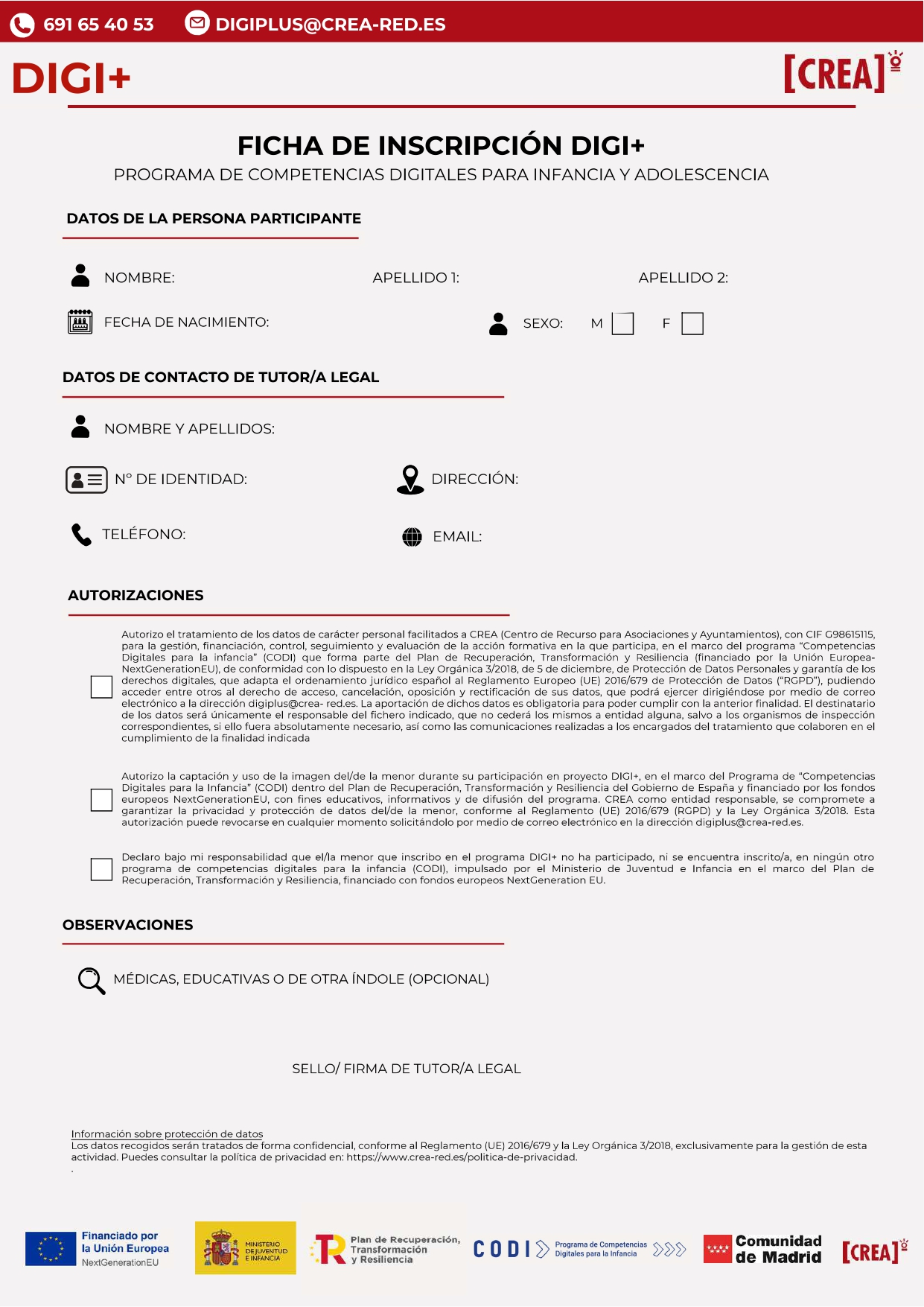 o descarga la solicitud de inscripción, cumpliméntala y envíala a digiplus@crea-red.es