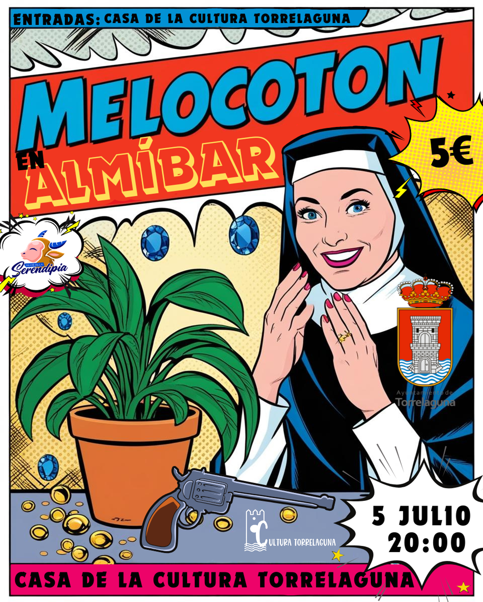 La segunda cita será el sábado 5 de julio a las 20:00 h, con la célebre comedia “Melocotón en almíbar”, del dramaturgo Miguel Mihura. Una historia trepidante donde ladrones, monjas y objetos sospechosos se entrecruzan en un apartamento lleno de situaciones disparatadas. Una pieza divertida, ágil y cargada de ironía que se mueve entre el crimen y la ternura, y que ha hecho reír a generaciones enteras.