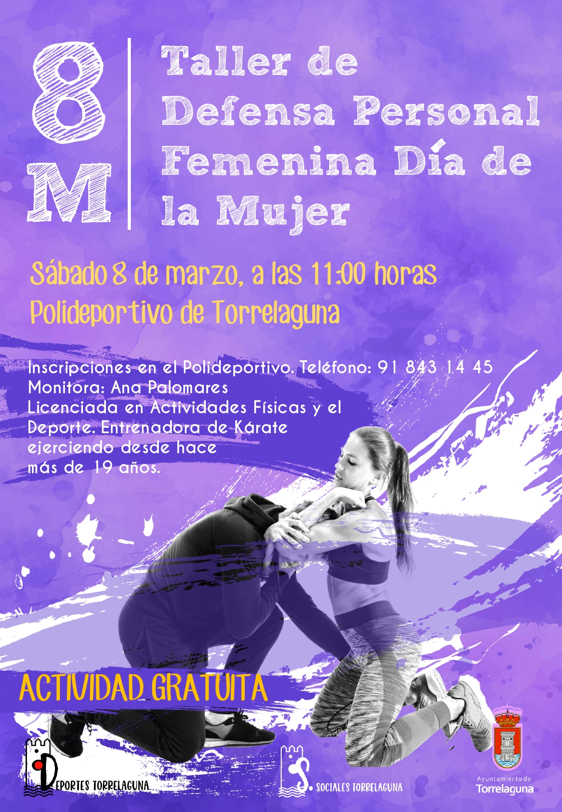 En el marco de las actividades programadas por el Ayuntamiento para conmemorar el Día Internacional de la Mujer, este próximo sábado, 8 de marzo, a las 11:00 horas, tendrá lugar en el Polideportivo de Torrelaguna un taller de defensa personal femenina gratuito impartido por Ana Palomares.