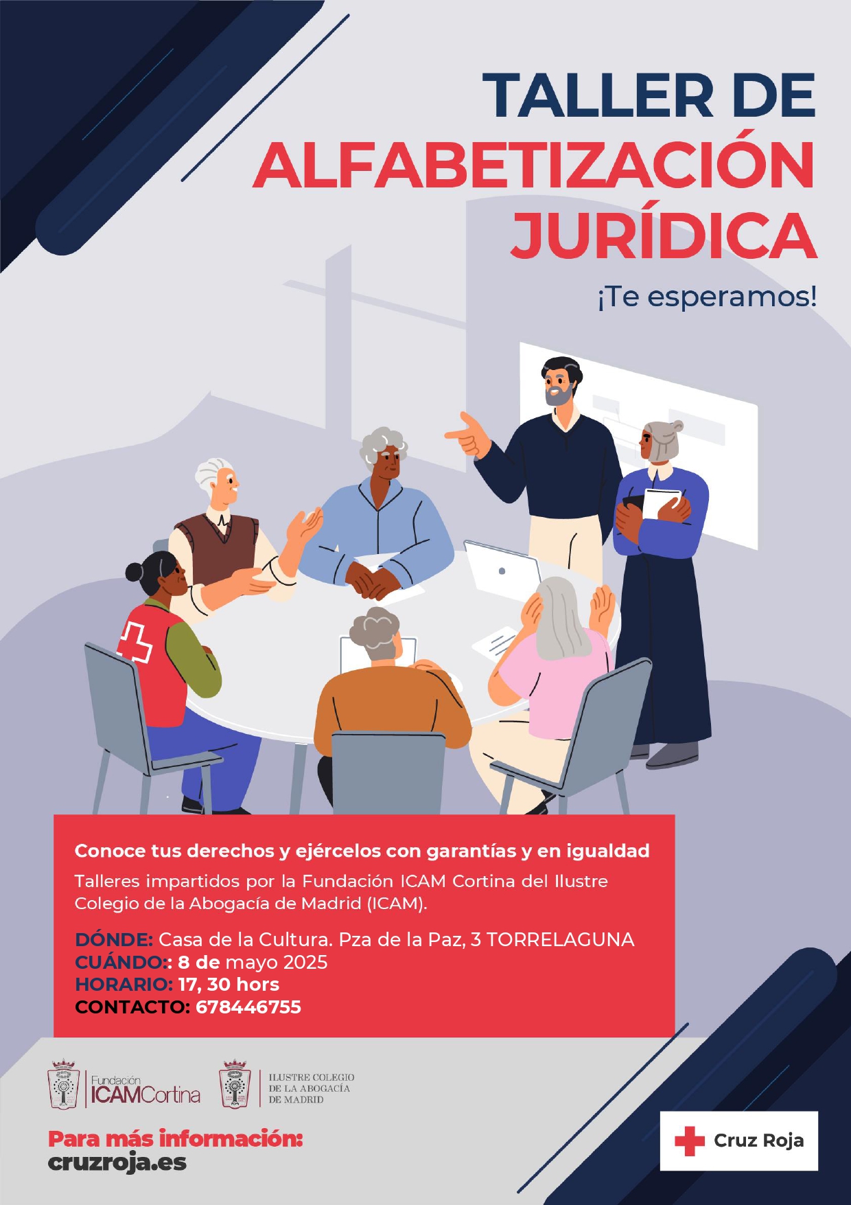 Este próximo jueves, 8 de mayo, la Casa de la Cultura de Torrelaguna acogerá un taller gratuito de alfabetización jurídica dirigido a personas mayores, organizado por Cruz Roja Sierra Norte, en colaboración con el Ayuntamiento, en el marco del Programa de Mayores.