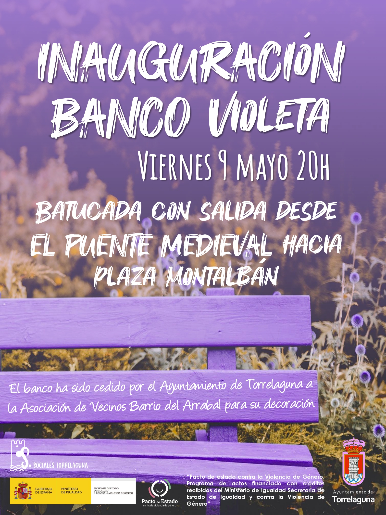 Torrelaguna acogerá este viernes 9 de mayo un acto muy especial en el que el compromiso con la igualdad y la memoria se hará visible en el espacio público. A las 20:00 h se inaugurará el Banco Violeta en la Plaza Montalbán, un símbolo de respeto y lucha contra la violencia de género impulsado por el Ayuntamiento y la Asociación de Vecinos del Barrio del Arrabal.